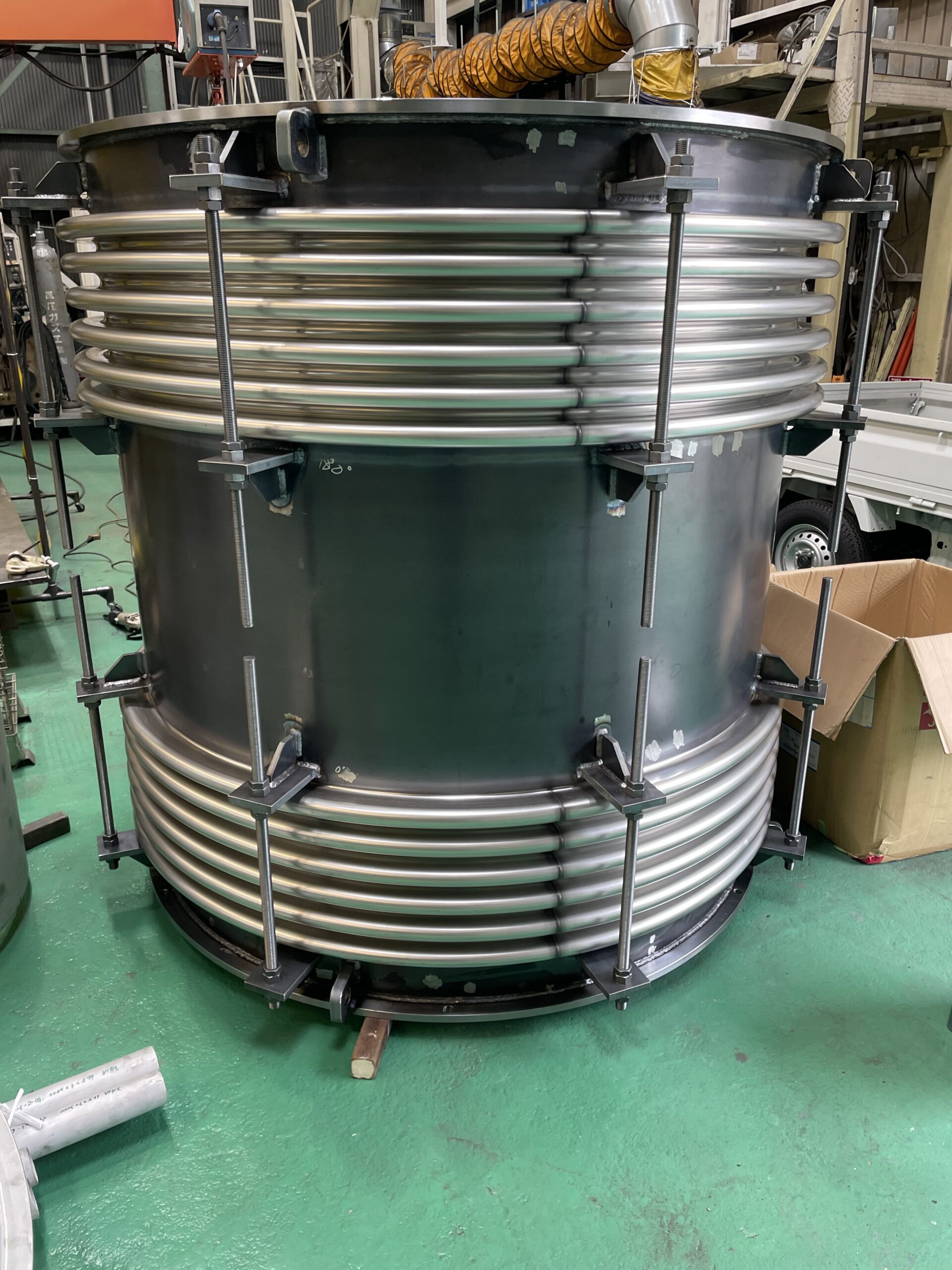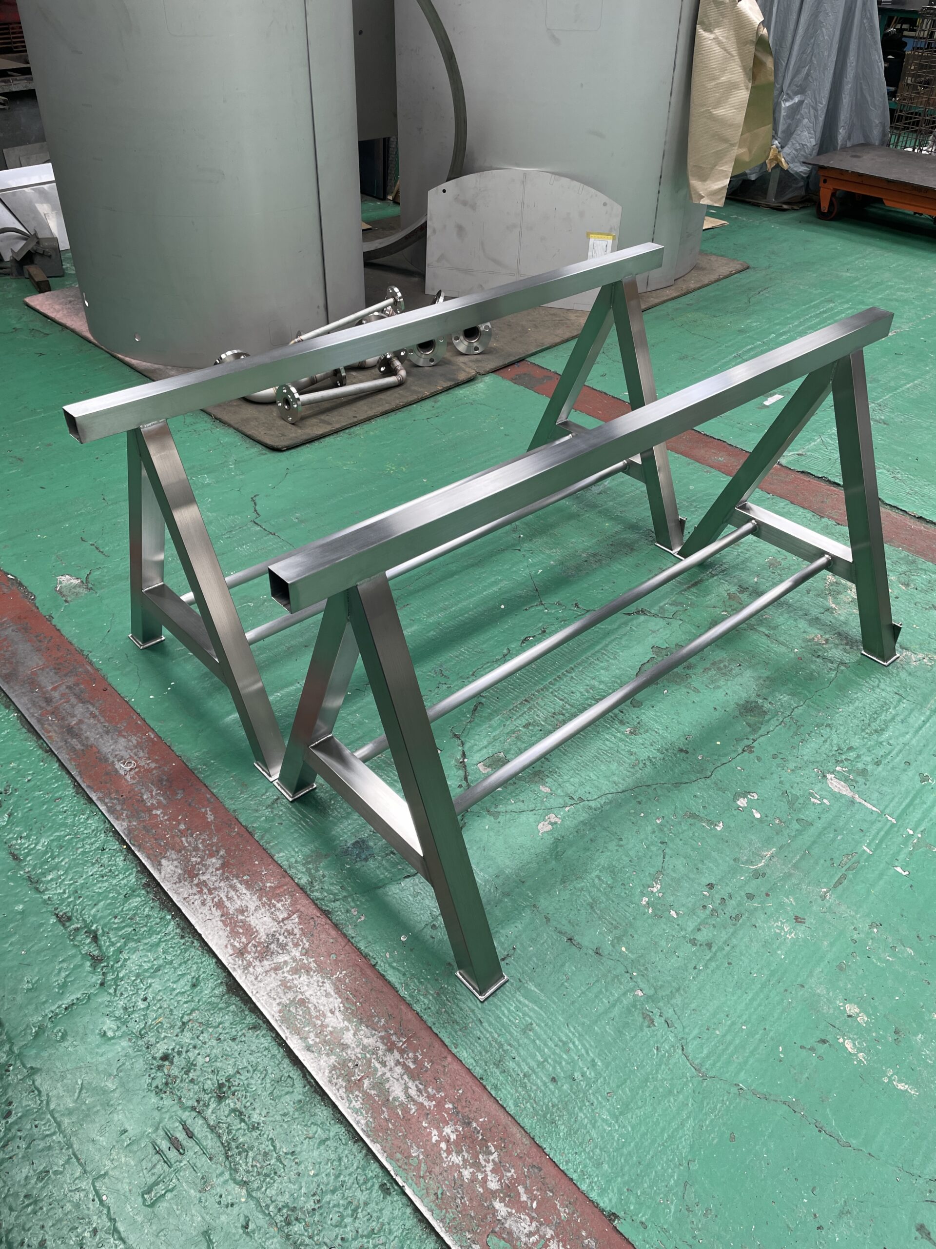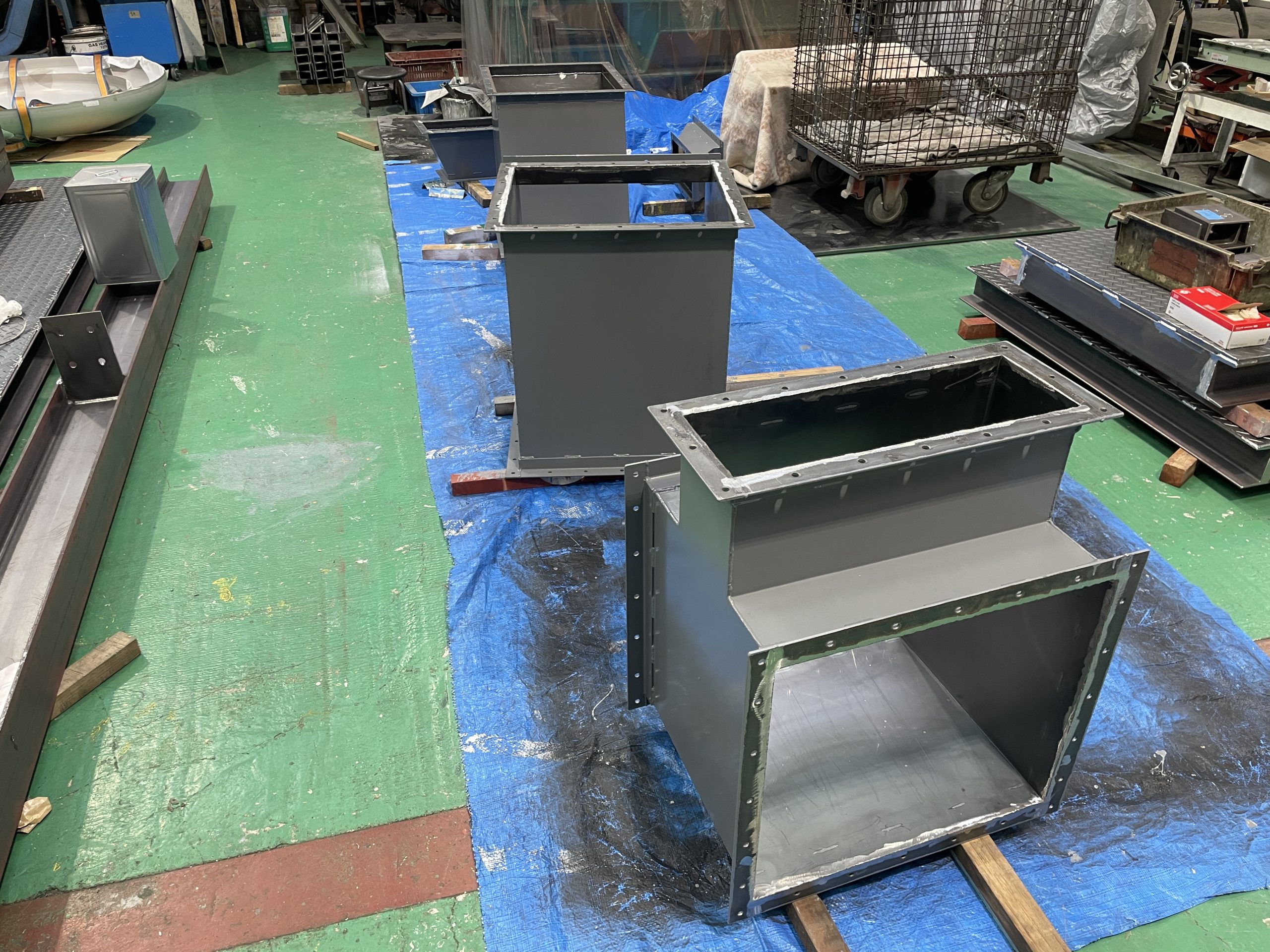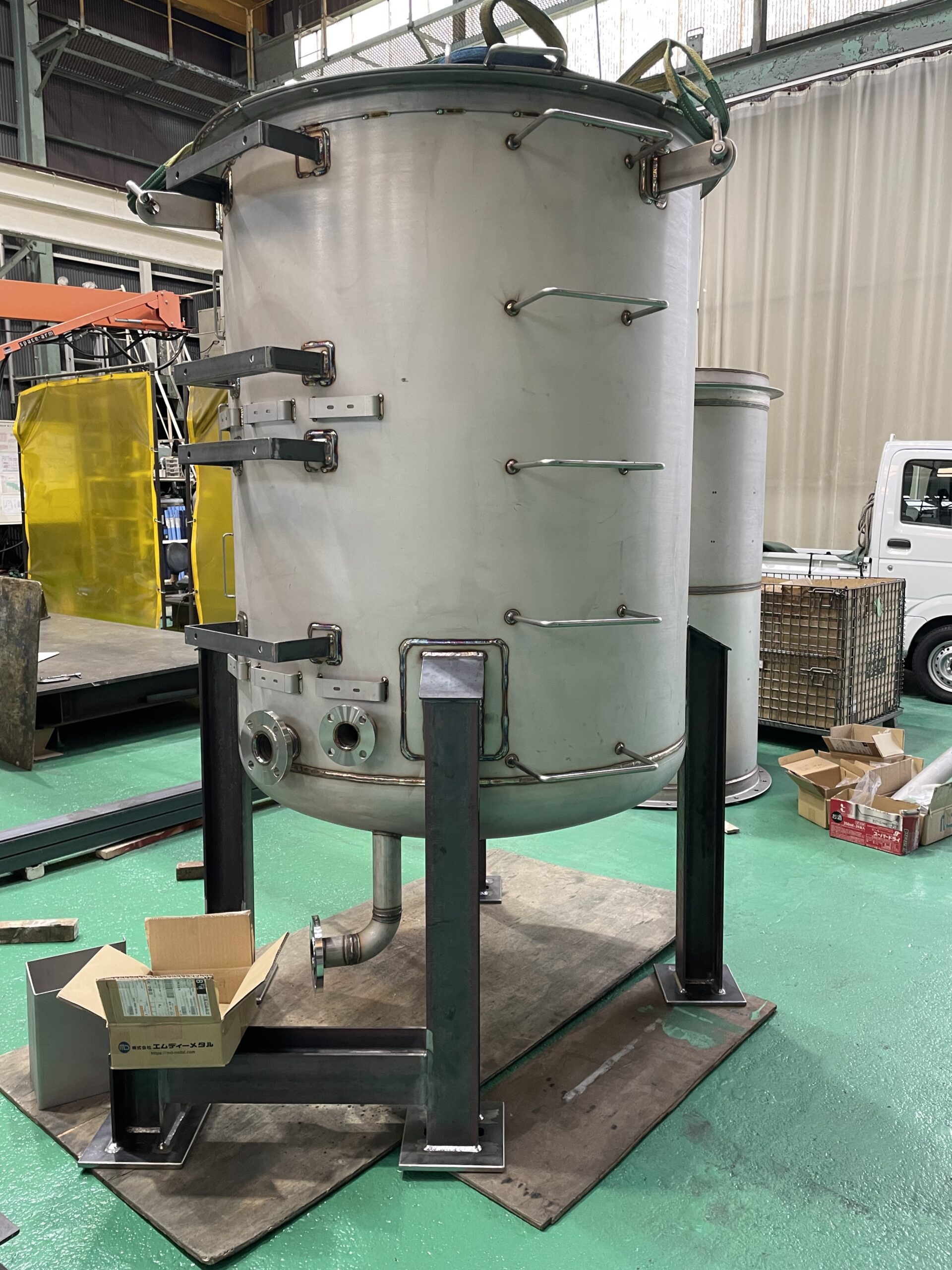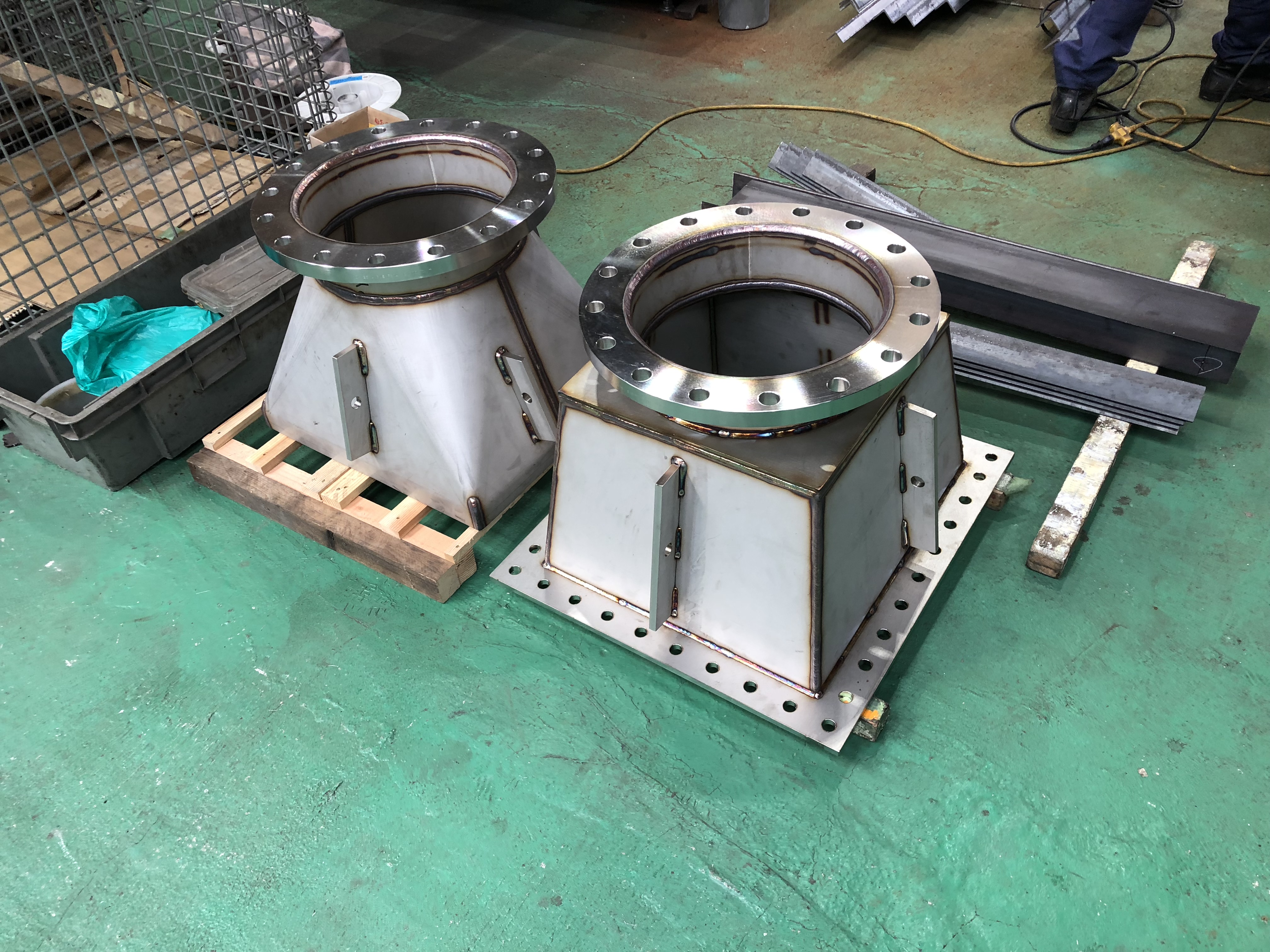 製造商品紹介 弊社にて作成した製品の一部をご紹介 ※各サムネイルをクリックすると新規タブにて拡大画像が表示されます。 フィルターケース材質:SUS304 4t 架台sus304(ヘアライン材) Φ1400伸縮接手×1.7m(高さ)材質:SUS及びSS Φ1100タンク×2m(高さ)材質:SUS316L 6t ホッパー材料:SUS SS角ダクト 2.3t 固定ページ: 1 2 3 4