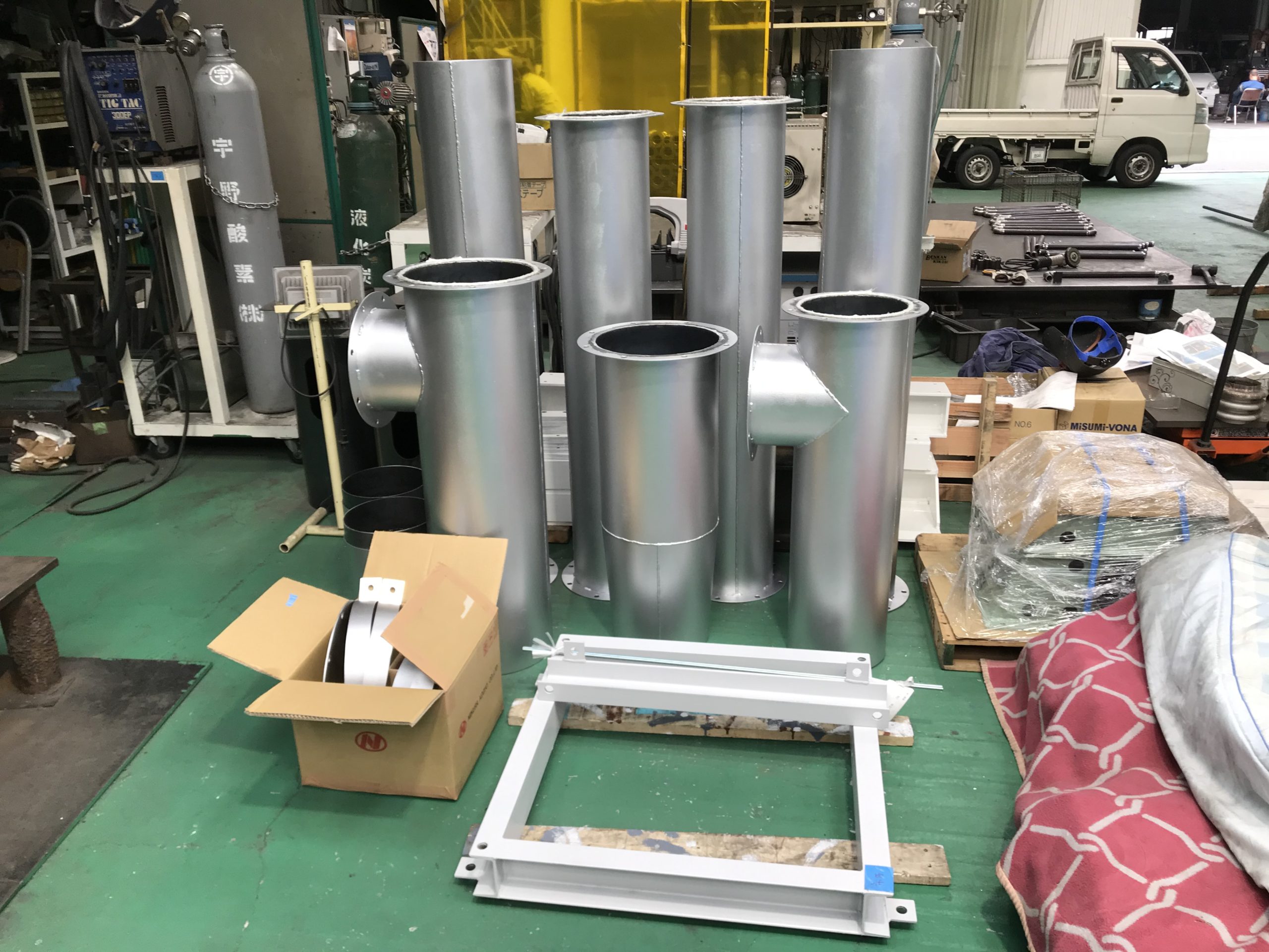 製造商品紹介 弊社にて作成した製品の一部をご紹介 ※各サムネイルをクリックすると新規タブにて拡大画像が表示されます。 ステンレス 手水台材料:SUS SUS炉材料:SUS 賽銭箱カバー材料:SUS 200A 高周波曲げ 配管材料:SUS ゴムサイロ材料:SSサイズ:1120×1625×3595 SS ボイラー用導煙管板厚 t2.3耐熱シルバー塗装 固定ページ: 1 2 3 4